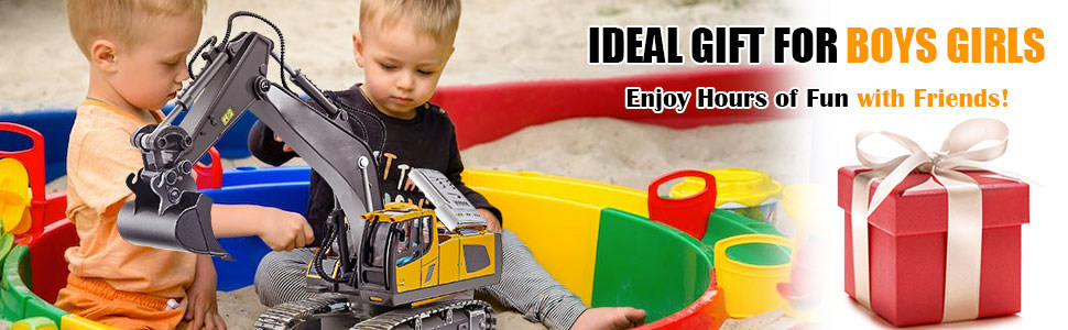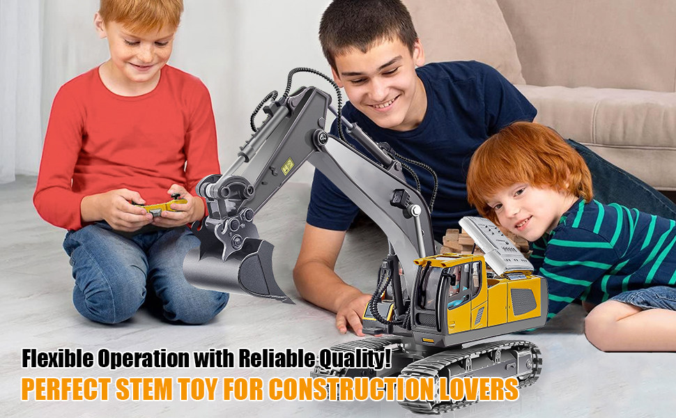 【Cadou robust pentru jocuri in aer liber】 Jucariile cu excavator pentru baieti, cadou bine facut, nu vor cadea sau vor ramane blocate in nisip. Poate fi sapat in mod repetat de multe ori pentru a obtine nisip, murdarie, pietris si alte materiale de constructie similare, joc dur pe multe terenuri. Copilul dvs. va fi foarte fericit sa aiba aceste vehicule de constructie cu telecomanda pentru zile de nastere, Ziua Recunostintei, cadouri de Craciun.